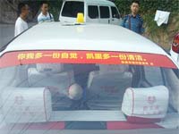目前凱里市創建國家衛生城市工作正在緊鑼密鼓地展開,凱里市城市公共客運交通管理局積極響應,認真貫徹落實會議精神,及時開展專項宣傳工作,將“創衛”宣傳標語張貼到全市626輛出租車和14條公交線路(見下圖)。此次活動為凱里市創建國家衛生城市起到了積極的宣傳作用,營造良好的宣傳氛圍。(張秀慧)