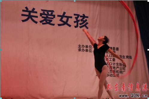 在文藝匯演活動場,演員們那精彩表演,深受觀眾歡迎,掌聲不斷。既弘揚了“五四”精神,又在愉悅的氣氛中宣傳了“男女平等、生男生女一樣好”的科學、文明、進步的婚育觀念。使廣大群眾,青少年牢固樹立男女同樣能成才、男女同樣能立業、男女都是傳后人的思想意識,號召全社會都來關愛女孩,為她們的安全出生,健康成長,順利成材獻出最大的愛心。圖為活動的現場(周鋒)