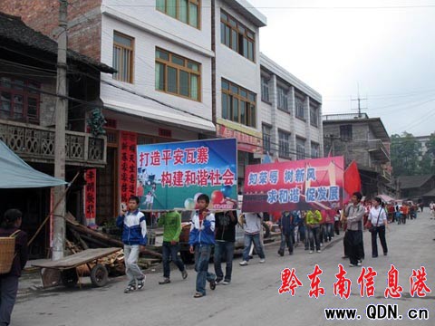 本港訊 (特約記者 石遠軍 攝影報道)2009年5月25日,由中共三穗縣委、三穗縣人民政府主辦,三穗縣政法委、三穗縣文廣局、瓦寨鎮(zhèn)人民政府承辦的“建設平安三穗,構建和諧家園文藝匯演”在瓦寨鎮(zhèn)農貿市場隆重舉行,瓦寨鎮(zhèn)鎮(zhèn)長龍斌出席演出并講話。