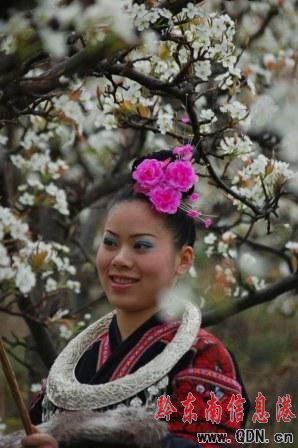 本港訊 (記者 姜秀波 梅艷) “人面梨花相映紅”。3月9日,在臺江縣革一鄉舉辦的2007年貴州賞花游、臺江梨花節吸引了眾多游客前去賞花踏青。