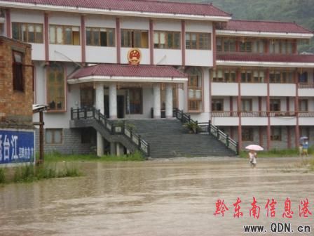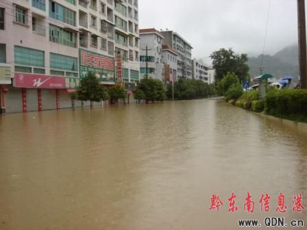 臺江縣城出現大量面積積水,積水深度達到一至一點五米,全城停電停水。部分一樓商店、商場停業,店主們紛紛使用盆、瓢等器物向外排水。許多上班族被困單位。
