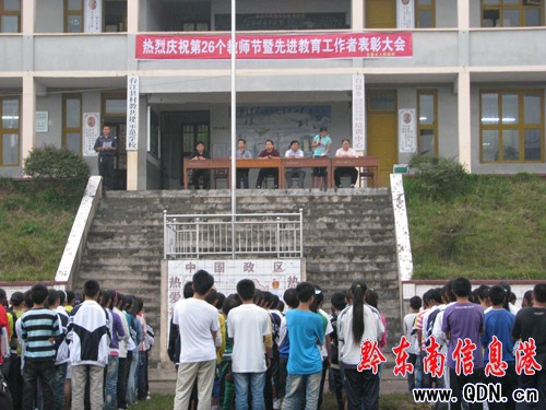 會上,臺盤中學表彰了3名優秀教育工作者、5名優秀教師以及4名先進班主任。據了解,320國道距學校僅300米遠,該校共有16個班級,846名學生,教職工有57人,今年臺江縣共4名學生考進凱里市第一中學,臺盤中學學生以優異成績占全縣2名。