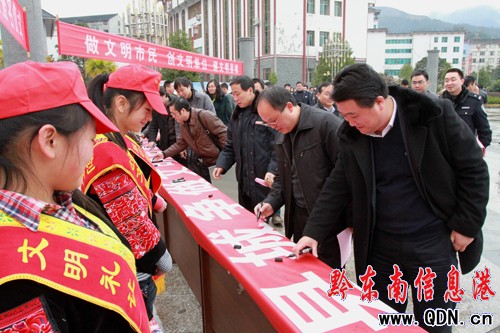 圖為該縣縣領導參加現(xiàn)場簽名