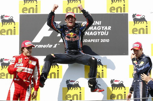騰訊體育訊 2010年8月1日 世界一級方程式錦標賽第12站——匈牙利大獎賽的正賽在布達佩斯的亨格羅林賽道進行。整場比賽在發車后阿隆索超掉第二位發車的韋伯,但是后者利用節胎而帶來的進站優勢領跑53圈之多,最后韋伯拿到本賽季第四個分站賽冠軍從而以4分的領先優勢坐上車手積分榜的頭把交椅。阿隆索沒能繼續上一站的強勢僅列第二,桿位發車的維特爾由于在安全車出動時違規被罰通過維修站列第三。此外,今天是舒馬赫結婚15周年,車王水晶婚快樂!