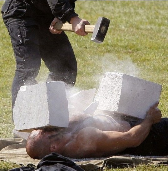 中國功夫“武裝”特種兵 硬漢胸口碎大石(圖)