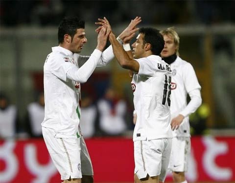 第21分鐘,馬爾蒂尼奧左路傳中,萊德斯馬球門左側凌空抽射踢高;第29分鐘,阿奎拉尼遠射稍稍高出橫梁;第34分鐘,亞昆塔橫敲到中路,佩佩低射破門,尤文圖斯1-0領先;第36分鐘,卡塔尼亞左路傳中打在了門前準備解圍的格羅索身上,森本貴幸及時跟上將球送進球門,1-1平。