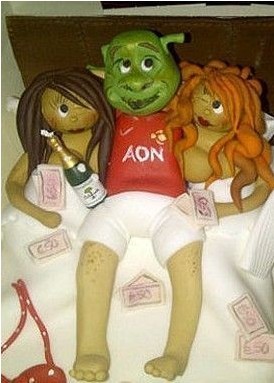 說起來,科特迪瓦人在切爾西的人緣算是很不錯,否則大家不會別出心裁替他慶生。不過這款裸女蛋糕明顯是拷貝了別人的創(chuàng)意,因為就在幾天前,魯尼招妓門的女主角生日,她也是收到一個造型別致的蛋糕。上面是史瑞克模樣的魯尼和兩名妓女的圖案,周圍還灑滿了各種面額的鈔票。從這個蛋糕得到靈感,切爾西馬上派人定制了一款蛋糕,其中德羅巴身穿白襯衣坐在一輛豪華汽車上,周圍是一絲不掛的三個艷女,分別舉著科特迪瓦和切爾西的旗幟。