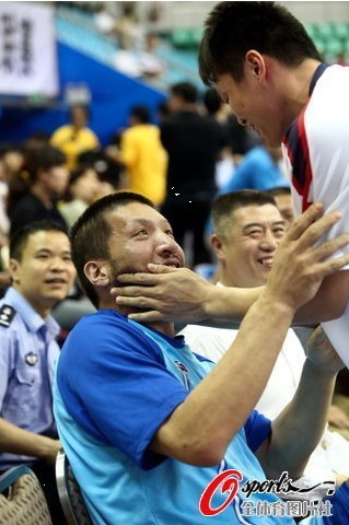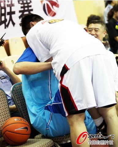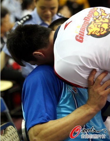 組圖:CBA總決賽 朱芳雨與大巴借位“熱吻”