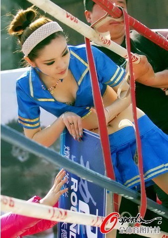 2011年4月21日,中泰明星對(duì)抗賽水泊梁山上演,舉牌女郎性感妖嬈引無(wú)數(shù)好漢竟折腰。