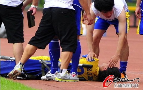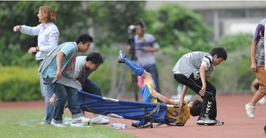 騰訊體育訊 2011年5月8日,2011年中甲聯(lián)賽第8輪,湖南湘濤vs天津松江,終場(chǎng)前,湘濤場(chǎng)邊擔(dān)架人員將客隊(duì)球員王鵬摔在場(chǎng)邊使得場(chǎng)面一度混亂。