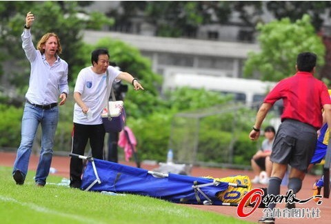 組圖:醫(yī)務(wù)人員摔擔(dān)架引騷亂 松江主帥暴怒