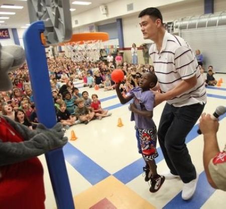 姚明探訪休斯敦當地小學 讓小孩也感受扣籃的感覺