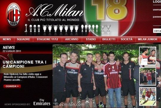 騰訊體育訊 足球是世界第一運動,這點毋庸置疑,其影響力波及整個體育界,網壇概莫能外。眾所周知,西班牙球星納達爾是皇家馬德里的忠實粉絲,費德勒鐘愛瑞士巴塞爾隊,那么新科男子網壇世界第一德約科維奇呢?意甲冠軍AC米蘭!