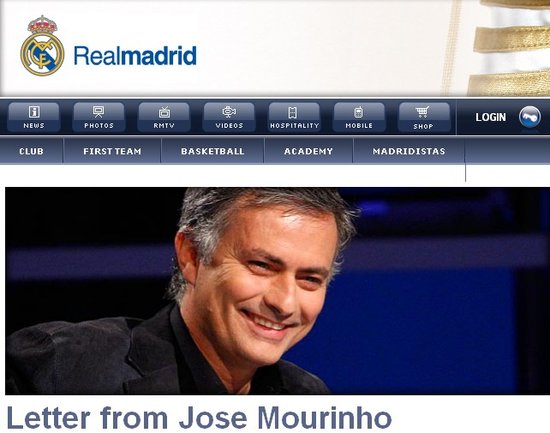 穆里尼奧公開信全文如下: