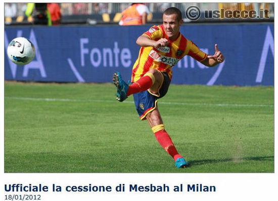 網易體育1月19日報道 當地時間1月18日晚,萊切俱樂部官方宣布,梅斯巴正式加盟AC米蘭。梅斯巴年薪50萬歐,和米蘭簽約4年半直到2016年6月30日。