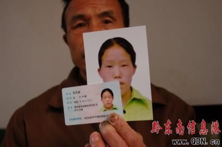 圖:父親石齊盛拿著女兒的照片和身份證