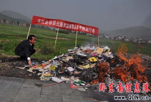 天柱集中銷(xiāo)毀非法出版物1萬(wàn)余件(圖)