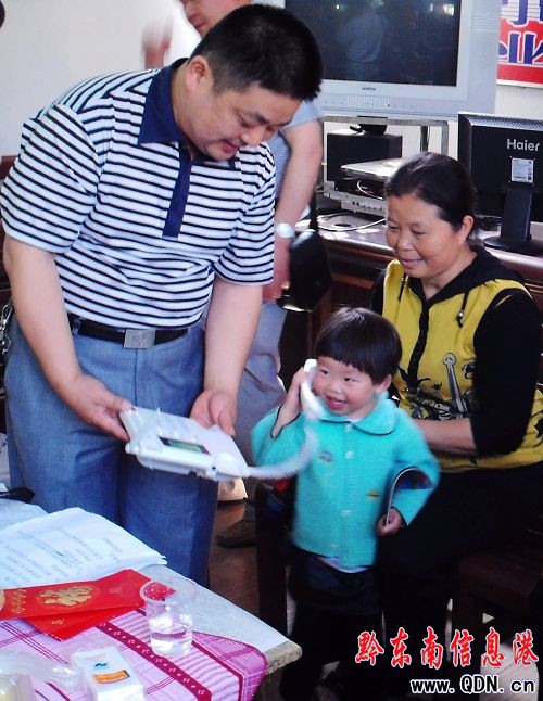 5月29日,今年4歲的天柱縣風城鎮(zhèn)北門社區(qū)的楊倩妮,第一個用“關愛留守兒童移動電話”,撥通了遠在廣東打工父母的電話,稚嫩的喊:“媽媽,我得禮物了。”她母親驚喜交集的回應:“乖,哪個送的?”