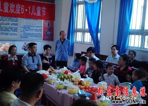 當天,該縣總工會、婦聯(lián)、團委、關工委等部門在社區(qū)歡聚一堂,與留守兒童提前歡度“六•一”, 給他們送上慰問金、新書包和蛋糕等禮物,并與他們歡快地唱起歌、跳起舞。