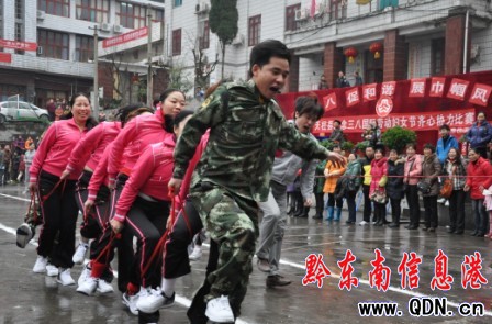 此次比賽共有來自縣、鄉兩鄉的32支隊伍、300多名女同志參加。雖說是女同胞們的節日,但每個參賽隊還分別配有兩名男同胞作搭檔,為比賽增添不少歡樂和諧的氛圍。