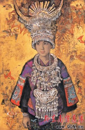 經過數月的艱苦創作,今年3月份,《相思樹》(如圖)“橫空出世”,畫中苗族少女漂亮的銀飾、古樸的服飾,這種美妙搭配,讓欣賞者方佛聽到了銀飾發出的清脆的聲音,好像遠遠的聽到了發自她內心深處為表達思念遠方愛人的情歌。