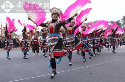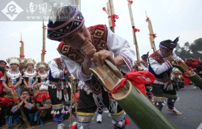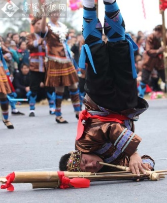 據南國早報網消息 蘆笙舞,是融水苗族自治縣的一項民俗“專利”了。11月21日,該縣舉行第四屆蘆笙斗馬節上,來自全縣各鄉鎮的蘆笙隊,苗族男女個個穿上花紅柳綠的百鳥衣,手持各種大中小的蘆笙趕到會場,向觀眾表演了倒吹蘆笙、舞動蘆笙等千姿百態的蘆笙舞,引來了各方游客的觀賞。