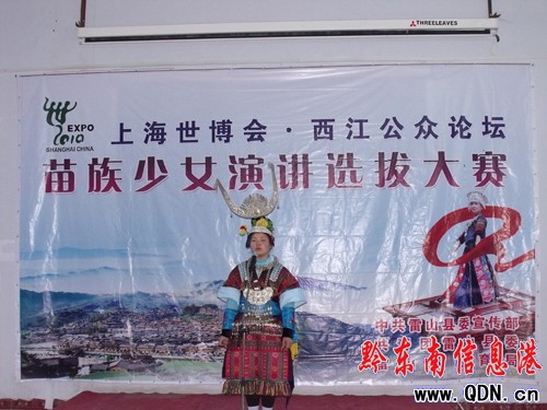 本港訊(楊勝倫 特約記者 張希才)為迎接“上海世博會.西江公眾論壇”在雷山西江千戶苗寨的舉辦,2月5日,雷山舉辦“迎接上海世博會.西江公眾論壇”苗族少女演講比賽,為《論壇》獻上的一份薄禮。
