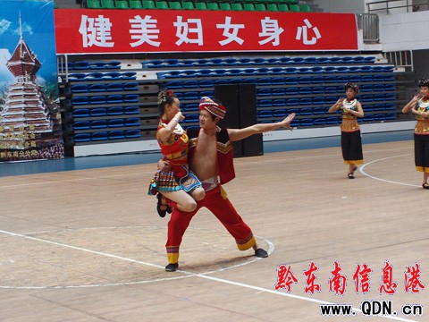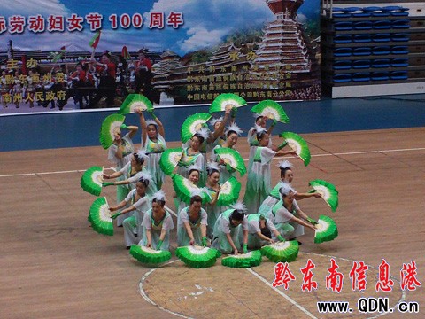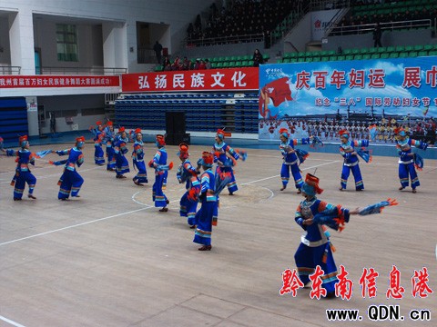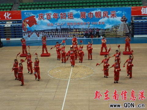 本港訊 (記者 許世芳 廖強 攝影報道)三月的蓓蕾綻放早春第一抹殷紅,新女性的詩行演繹著奮進的感動。3月5日上午,黔東南州2010年首屆百萬婦女民族健身舞蹈大賽在州體育館精彩上演。