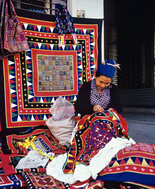 土屋低矮,女主人坐在織布機前,為緯線,棉為經線,手上的梭子左右穿梭;男人們下地收玉米;老人在院子里曬太陽;姑娘們坐在門口飛針走線—這是十幾年前一個普通苗寨最常見的生活場景。在這里, 女人身上絢麗的衣裙,全靠自己一經一緯織出來,一針一線繡出來。
