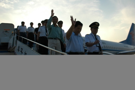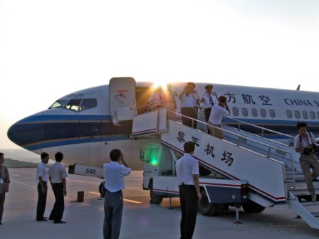 18時零8分,承擔這次試飛任務的五名機組人員走下飛機,國家民航總局貴州安監辦主任肖峰、廣州空軍司令部航行處處長張振國、黔東南州委副書記、州長李月成、州委常委、宣傳部長石干昌、州政府秘書長朱光榮和黎平縣政府縣長閔啟華等同機抵達。