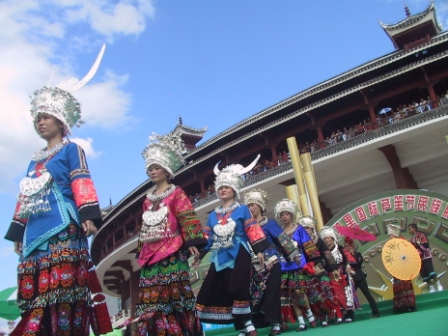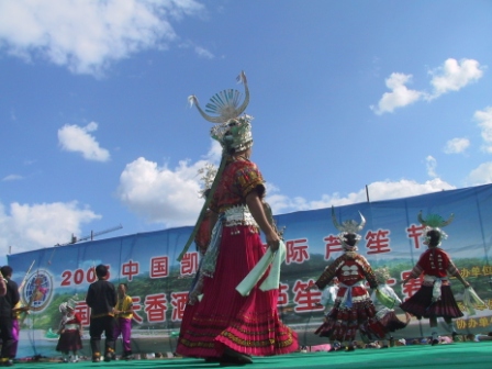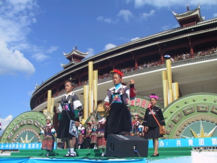 本港訊 (記者 姜秀波)在鄉下長大、從來沒走上過舞臺的阿朵、阿來兩姐妹,第一次大膽在臺上當起了苗族服飾的“模特”。凱里國際蘆笙節期間,凱里地區農村的女苗族同胞以各種方式展示自己獨具民族特色的靚麗衣服。