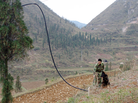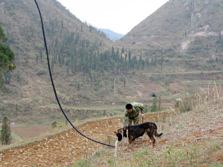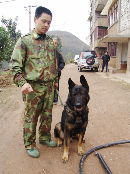 據介紹,6時許,警方接到報案,隨即出動一條警犬開展追捕。罪犯聞訊倉促逃逸,警犬引導民警在山上“順藤摸瓜”,在離作案地點幾百米處,將竊賊抓獲。