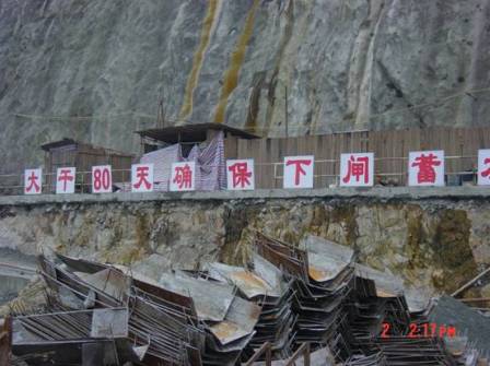 為確保大壩按期下閘蓄水,工人們正在洞內緊張地施工 (劉榮廷 攝)