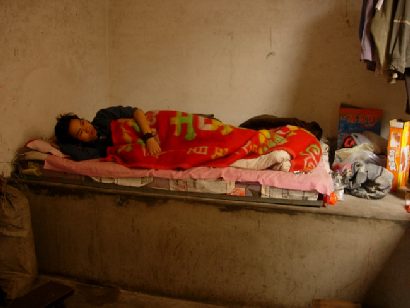 因?yàn)闊o法支付昂貴的醫(yī)療費(fèi)用,在醫(yī)院躺了一段時間后,其父龍昭江在凱里租了一間房子,把龍明洪從醫(yī)院接了出來。記者采訪時,剛做透析回來的龍明洪正躺在床上休息。龍父告訴記者,由于沒有錢租大的房子,每天晚上,母子三人就擠在一張床上睡覺。