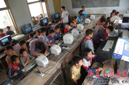 據校長王澤剛說,這些‘電腦’,都是跟家長借的。學校決定開“微機課”,但沒有資金購買電腦,學校學生好學奮進,為了滿足學生的需求,老師們只好到走家竄寨。在得到大多數家長都同意后,在自愿的前提下,學校與部分經濟條件略好的家長達成了合作框架,由家長提供學習機鍵盤或電視機給學校作教學使用。如果他們的孩子畢業了,學校負責退還設備。就這樣一個貧窮山區學校很順利地辦起了“微機課”。