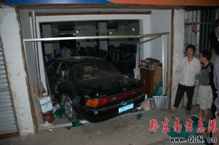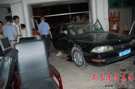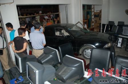 本港訊 6月19日晚11時許,在凱里市北京東路,一輛在該路段行駛的貴H 06048小轎車突然沖上人行道,沖進路邊一家網(wǎng)吧敞開的大門中,當(dāng)場將兩名正在網(wǎng)吧大廳上網(wǎng)的市民撞傷,網(wǎng)吧部分電腦受損,事發(fā)現(xiàn)場狼藉一片,血跡斑斑。事后,當(dāng)?shù)亟痪杆仝s來調(diào)查此事。