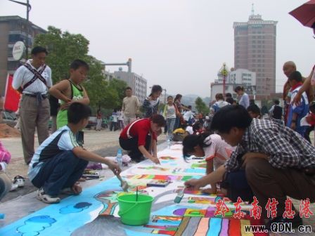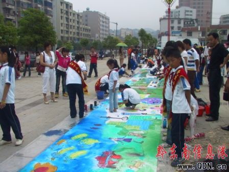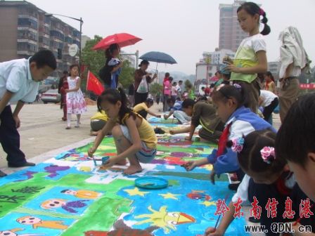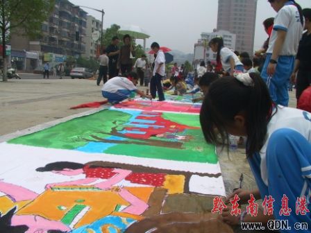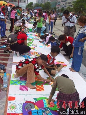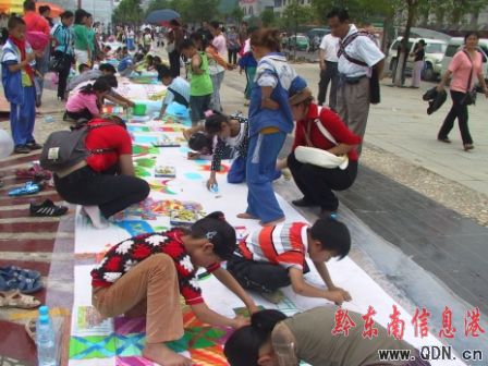 凱里當地婦聯組織千余名少年兒童在萬博廣場,舉行“喜迎奧運、放飛夢想”為主題的彩繪長卷活動。(姜秀波 攝影報道)