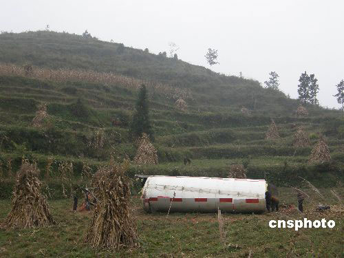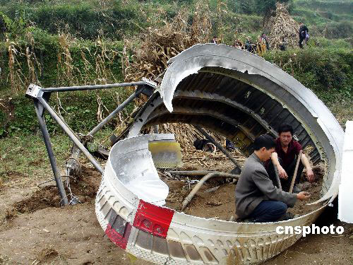 10月24日18時5分,我國在西昌衛星發射中心用長征三號甲運載火箭將嫦娥一號成功送入太空。搭載嫦娥一號衛星的長征三號甲運載火箭一級殘骸在24日18時16分安全按計劃墜落在預定范圍,由于政府有關部門部署精密,疏散到位,沒有造成任何人員傷亡。中新社發 毛遠富 攝