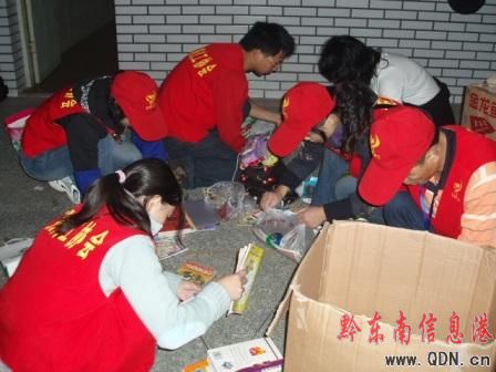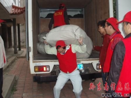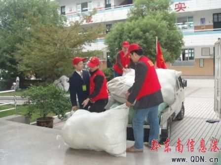 東陽義工協(xié)會于十月下旬發(fā)動社會各界人士獻愛心,倡議一經發(fā)出,得到廣大愛心人士的熱情支持。城區(qū)九所中小學校和機關幼兒園、廣廈學院、巍山鎮(zhèn)中、小學,先后組織老師和學生捐衣捐物捐運費,一些工廠、企事業(yè)也開展了捐助活動,參與活動的家庭達五萬多戶,愛心人士的熱情超乎想像,3、4號接受社會捐贈時,市民們利用各種交通公具,源源不斷送來衣物,一位義烏市民得悉后,特意托人捎來一大箱衣物……,其中有整箱的新文具盒、整捆的新鉛筆、整疊的新西服;愛從四面八方涌來,網通公司派出了人員和車輛,東振電機、義烏恒業(yè)進出口有限公司多次免費提供車輛保障,得知衣物多、運費缺的消息后,東陽中學、東陽得邦高科技纖維有限公司老總、東陽市金誠測繪有限公司葛會長、潔仕餐具消毒有限公司(籌)黃先生等,還有不愿透露姓名的愛心人士,主動到協(xié)會辦公室捐助了運費,獻出自己的一份愛心,使東陽人民的愛心衣物得以早日運送到貴州省黔東南州。