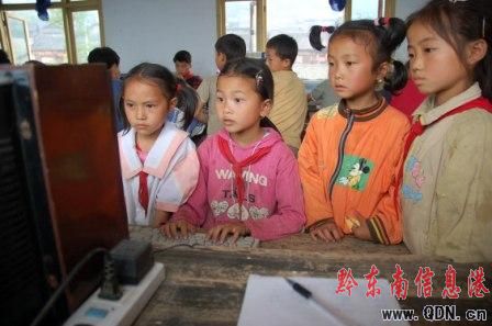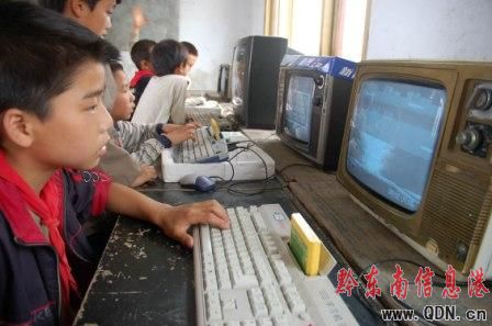 本港訊 “幾名小學(xué)生在用黑白電視機(jī)組裝的‘電腦’前學(xué)習(xí)打字,在貴州省