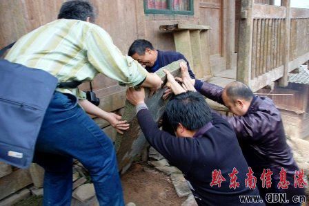 “為了保護好這塊石碑,珍藏這一段見證中美友誼的歷史,吳老德多年來一直把墓碑碑文一面覆蓋在泥土中!比世镟l黨委書記謝賀前說。此刻,吳老德一邊講著故事,一邊在村人的幫助下掀開覆蓋在房屋邊樓梯下的墓碑進行展示,并牽來塑料水管,認真地擦拭碑上的泥土!坝鲭y者為飛機駕駛員畢德森。”吳老說。