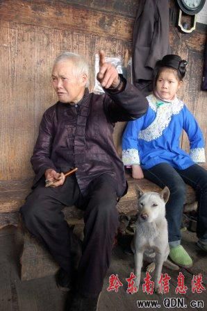 80歲的當年目擊墜機過程的侗族老人吳世超向小輩們講述那段歷史。