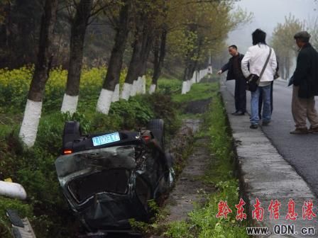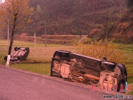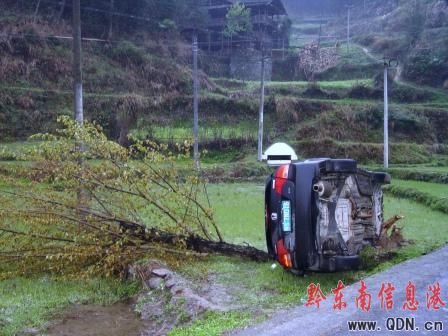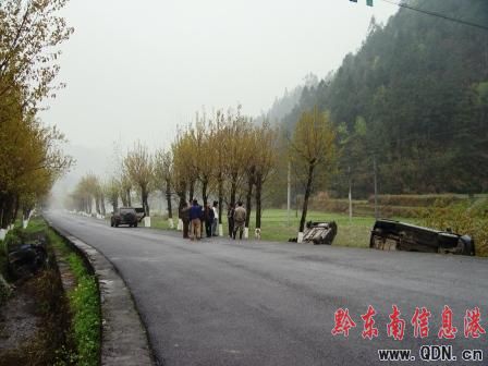 據(jù)三穗交警介紹,當(dāng)日20時許,一輛由凱里往三穗方向行駛的本田小汽車,在行至三穗縣27公里+700米款場鄉(xiāng)楓木坳所在地時,由于駕車司機不熟悉路況,天雨路滑,在急彎處與迎面駛來的兩輛汽車相遇,躲閃不及而墜入左邊溝里,反向而馳的另兩輛車子則翻入右面水田里,造成了車毀人重傷的慘劇。據(jù)悉,本田車內(nèi)所載4人,全部為貴州省內(nèi)某高校大學(xué)生,學(xué)校放清明假當(dāng)天,他們就急于回天柱掃墓的。 (圖為事故現(xiàn)場)