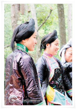 岜沙女子的服飾尺寸十分合體,少見的收腰,細細的袖管,盡顯女性的曲線美。即便是下地干活,她們也會穿著民族服裝,發髻梳理得一絲不茍,讓你總會情不自禁地流連地張望她們的背影。