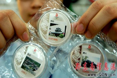 隨著奧運火炬在凱里市傳遞日期的臨近,奧運火炬接力紀念章日前已在貴州省上市發行。該組紀念章圖案采用了每個城市的代表景觀,為全球134個火炬傳遞城市量身設計。貴陽市的文昌閣、凱里市的朗德上寨、遵義市的遵義會議會址入選為定制紀念章上的圖案。