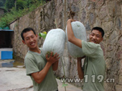 消防官兵辛勤汗水換來滿園瓜果飄香(圖)