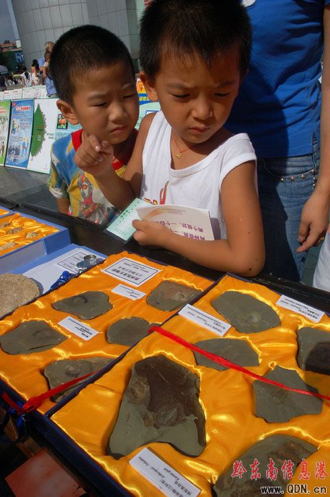 本港訊 (吳如雄 攝影報道)昨日(21日),黔東南州科協組織多名科普愛好者在凱里舉行街頭古生物化石展,向市民講解地球生命起源、進化過程和古生物化石形成的原因及其科研價值等科普知識,吸引了市民好奇的目光。其中展出的幾件在凱里發現的迄今5.25億年前的始海百合動物化石,被中外古生物學家認定為目前全球在下寒武紀地層中惟一發現的棘皮類動物,該動物被稱為“地球上最古老的先民”。
