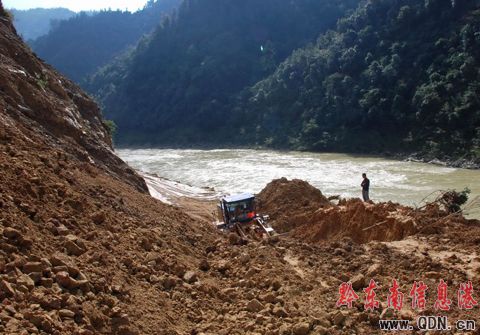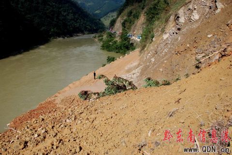 榕江:8000余立方山體滑坡 國道中斷(圖)