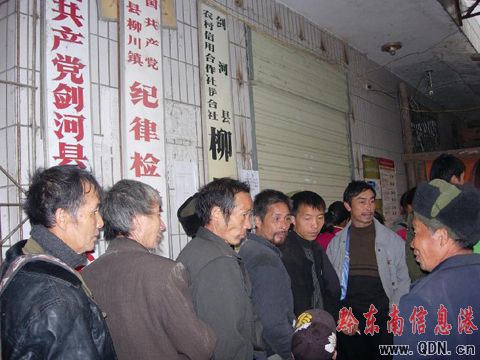 本港訊 12日21日,劍河縣柳川鎮信用社因系統升級,數十名群眾因怕取不到錢而在營業室外排隊苦苦等待,從上午8時到12時足足站了5小時。