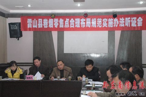 12月5日,貴州雷山縣煙草專賣局為搞好明年新《煙草專賣零售許可證》的發(fā)放,提前一個月展開全縣卷煙零售戶合理布局實施辦法聽證會,在縣人民政府的組織下,有關(guān)部門和全縣卷煙零售戶代表40余人在縣城召開了全縣卷煙零售戶合理布局實施辦法聽證會,為明年新《煙草專賣零售許可證》的發(fā)放作好準(zhǔn)備。(吳興權(quán) 攝影報道)